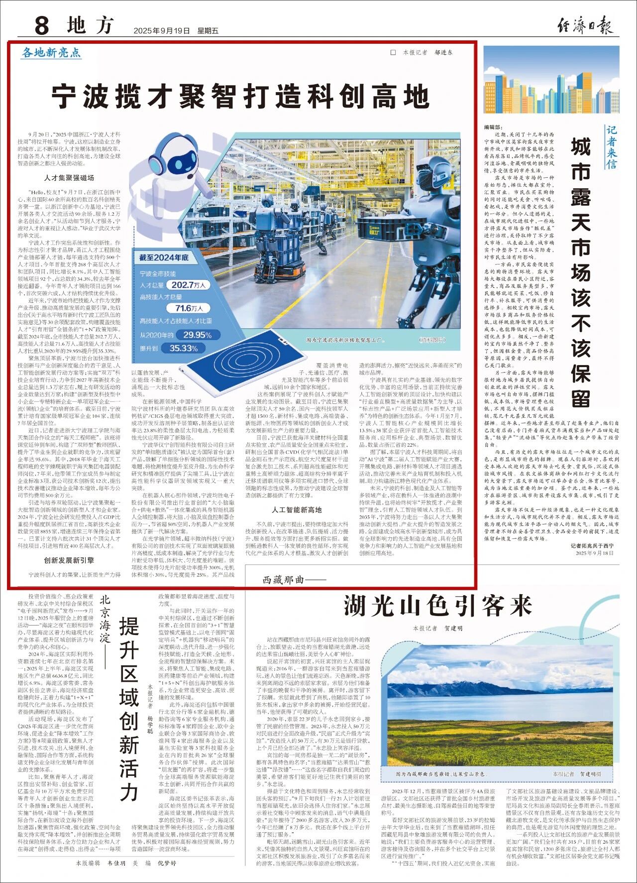9月19日,经济日报刊发报道《宁波揽才聚智打造科创高地》。